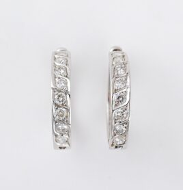runde Form, besetzt mit je einem Brillant von zus. ca. 0,10 ct. im mittleren Farb- und mittleren bis geringen Reinheitsgrad, ca. 2,9 g, ein Stift verbogen (41720-40)