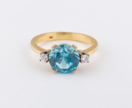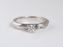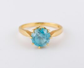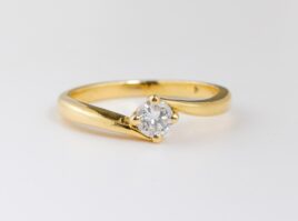 besetzt mit einem Brillant von ca. 0,20 ct. im mittleren Farb- und Reinheitsgrad, RW 49, ca. 2,5 g, Gebrauchsspuren (41709-113)