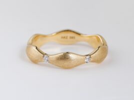 mattiert, rundum besetzt mit sechs Brillanten von zus. ca. 0,15 ct. im oberen bis mittleren Farb- und Reinheitsgrad, RW 54, ca. 3,2 g (41730-1)