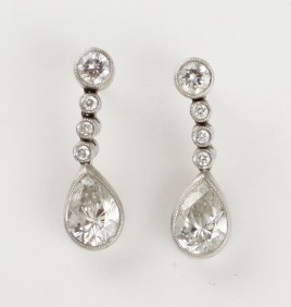 rosettenförmig besetzt mit je sieben Brillanten von zus. ca. 0,40 ct., durchschnittlich oberer Farb- und Reinheitsgrad, ca. 4,0 g