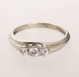 besetzt mit fünf Brillanten von zus. ca. 0,15 ct,, RW 50, ca. 3,0 g, Ringschiene restauriert