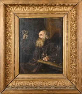‚Weinliebhaber‘, Öl/Lwd., 35,5 x 27,5 cm, Kratzspur