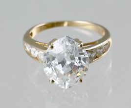 darunter Colliers, Ohrclips, Broschen, Armreif, einzelner Manschettenknopf, teils besetzt mit farbigen und farblosen Dekor- und Farbsteinen, dazu Damenarmbanduhr, Portor, Metall vergoldet, schwarzes Textilband, nicht gangbar, Gebrauchs- und Kratzspuren, dazu ungefasster Citrin im Tafelschliff, ca. 15,11 cts., minim berieben, dazu Konvolut Modeschmuck, darunter Manschettenknöpfe, Krawattennadeln, Anhänger, Pin, Serviettenring, Metall vergoldet, dazu Damenarmbanduhr, Ascot, Stahl, Quartz, weißes Lederband, mit Stiftschließe in Metall, Gebrauchsspuren *zus. mit /39*