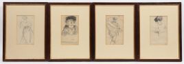 je r.u. Stempelsig., ‚Figuren‘, vier Bleistift- bzw. Kohlezeichnungen, je ca. 19 x 12 cm (PP-A.), gebräunt