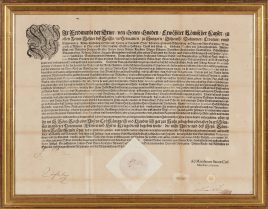 (1608-1657), gedrucktes Mandat von 1643, mit Papiersiegel, 44 x 57 cm, gebräunt, Wurmschäden, montiert