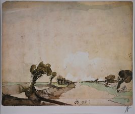 ‚Holländischer Kanal im Herbst‘, Aquarell, 39 x 50 cm, Lichtschaden, fleckig