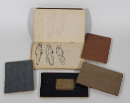 Alkmaar 1621 – 1675 Amsterdam, ‚Landschaft‘, Radierung, 12 x 16 cm; Johann Christian Jacob Friedrich (1746-1813) nach Piranesi, ‚Colonna Antonina‘, Kupferstich, 30 x 22 cm; Fritz Mackensen, Greene 1866 – 1953 Bremen, ‚Gänserupfer‘, Radierung, 38 x 26 cm; dazu Konvolut Druckgraphik, Fotografien und Handzeichnungen verschiedener Künstler, darunter Bruno Héroux (1868-1944), meist 19. und 20.Jh., 14 x 9 cm bis 44 x 33 cm, je beschädigt, o.R.