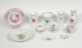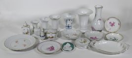 und Metall, darunter Rosenthal, Royal Kopenhagen, Hutschenreuther, verschiedene Gläser, Lacktablett und Modellschränkchen, mit Metallmontierungen, Cabaret, etc.
