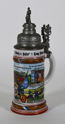 ‚Den Siegreichen Streitern, China 1900/1901‘; zwei Ehrenzeichen: Kreuz für 40 Jahre treue Dienste, mit Band; Kreuz für 25 Jahre treue Dienste, mit Band Kriegsverdienstkreuz, mit Schwertern, 2.Klasse, 1939; Eisernes Kreuz, 1813, 1939; Eisernes Kreuz, 1813, 1914; Medaille, Drittes Reich, Für Kriegsverdienst, 1939; Verwundetenabzeichen, Drittes Reich; Abzeichen, Kriegerkameradschaft Hassia, am rot/weißem Ripsband; Kriegsdankmedaille, Blank die Wehr – Rein die Ehr; Ehrenzeichen, Wilhelm II., Deutscher Kaiser, Infanterie – Andenken an die Rekrutierung; Ehrenzeichen, Treu zu Kaiser und Reich, am Band; zwei Ehrenzeichemn, Soldatenverein Offstein, mit Band; dazu Medaillen und Pins, verschiedener Vereine; zwei Krawattenklammern, Blattgold, Ascher und Tabakdose, mit Widmung, 1965