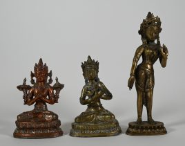 ‚Knieender Akt‘, Tuschfeder, 37 x 28 cm, gebräunt, knittrig; Monogrammist H.S., r.u.sig., dat. 15.2.(19)83, ‚II Akt‘, bet., Aquarell, 28 x 38 cm, gebräunt, fleckig; unbekannter Künstler, ‚Dame mit Hut‘, Tusche und Gouache, 27 x 18 cm (PP-A.) (3)