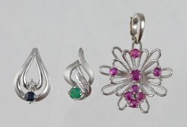 Ringe, Collierkette und Anhänger, teils besetzt mit farbigen und farblosen Dekorsteinen, ca. 66 g, teils verbogen