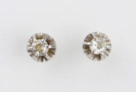 besetzt mit einer Zuchtperle, D = ca. 8,0 mm, ca. 1,5 g, dazu einzelner Ohrstecker, 14 K WG, besetzt mit einem Brillant von ca. 0,15 ct., ca. 0,8 g, Gebrauchsspuren