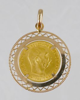 Österreich, 5 Kronen, Franz Joseph I., 1900; Deutsches Reich, 3 Mark, Wilhelm II., Deutscher Kaiser König von Preussen, 1914, beschädigt; Deutschland, 1 Siegestaler, Wilhelm I., König von Preussen, 1871; Deutsches Reich, 3 Mark, 25. Hochzeitstag von König Wilhelm II. von Württemberg und Charlotte von Schaumburg-Lippe, 1911, Randfehler; Deutsches Reich, 5 Reichsmark, Paul von Hindenburg, 1935; dazu Münze, USA, Half Dollar, John F. Kennedy, 1964 sowie Kleinmünzen, teils broschiert bzw. als Nadel und Nadeln mit plastischen Eicheln