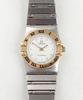 Stahl, teils vergoldet, Quartz, Datum bei ‚6‘, L = 17 cm, nicht gangbar, im Etui, dazu Ergänzungsglieder – Rechnung und Garantiekarte Juwelier Bauer 05/2003 über EUR 736,- liegt vor –