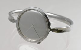 Uhr und Spange in Stahl, Gebrauchsspuren, Zifferblatt mit Druckstelle