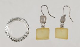 wie: Ring und Paar Ohrhänger, brutto zus. ca. 18,5 g