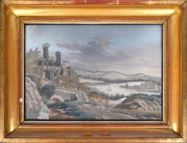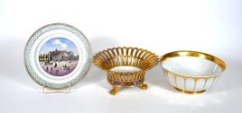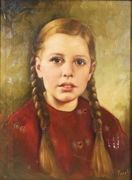‚Portrait der Emma Caroline von Arnswald‘, Bleistiftzeichnung, aquarelliert, oval, 24 x 18 cm, beschädigt; Monogrammist vA, l.u.i.d.Pl.mon., ‚Bei der Heimarbeit‘, Radierung, col., 17 x 11 cm (PP-A.); unbekannter Künstler, 19.Jh., ‚Mädchenportrait‘, aquarellierte Bleistiftzeichnung, 17 x 15 cm (oval); je Lichtschaden, gebräunt, fleckig (3)