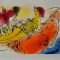 Weilburg 1946 – tätig in Bensheim, je l.u.sig. und dat. XII/(19)97, ‚o.T.‘, zwei Aquarelle mit Tuschpinsel, je 20 x 14,5 cm, und je verso sig. und dat. 11.2003, ‚o.T.‘, drei Arbeiten, Acryl/Holz, je 13 x 15 cm; Siegfried Speckhardt, tätig im Odenwald, ‚o.T.‘, drei Arbeiten, Acryl/Metall, 23 x 23 cm (2x) und 33 x 33 cm, Farbabplatzungen (8) */15 zund 18*