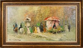 ‚Ansicht in Amsterdam mit Kathedrale‘, Öl/Lwd., 60 x 50 cm Unbekannter Künstler, ‚Belebter Blumenmarkt‘, Öl/Lwd., 50 x 60 cm *zus. mit /22*