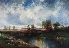 1857 – 1945, ‚Auenlandschaft‘, Öl/Lwd., 27 x 52,5 cm, restauriert, Farbfehlstellen