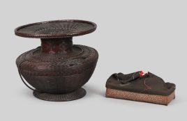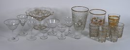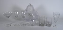 sowie Schale, mit weißen Fadeneinschmelzungen, D = 43 cm und Weinkühler, mit geätzetem Rebendekor */aus 162 und 22*