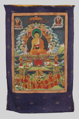 ‚Reisende am Marterl‘, Öl/Lwd., 37,5 x 46,5 cm, restauriert, doubliert