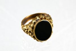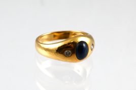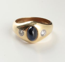 Collierketten, Ringe, Anhänger und Manschettenknöpfe, teils vergoldet, besetzt mit Sodalith, Rosenquarz, Onyx und farbigen Dekorsteinen, Gebrauchsspuren, teils beschädigt, dazu Gedenkmedaille (999), ‚Einweihung Schwarzwaldhalle 1975‘, zus. ca. 91,8 g