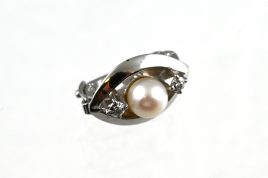 ‚Sternzeichen Widder‘, ca. 1,3 g, dazu Zuchtperlcollier, aus 52 Perlen, D = ca. 6,7 mm, Kugelsteckschließe in 585 GG, besetzt mit sechs Diamanten im 8/8-Schliff von zus. ca. 0,04 ct., L = 43 cm, dazu Konvolut Silberschmuck, wie Armband, Anhänger, Broschen, teils mit Emaille, Collierketten (gerissen), zus. ca. 41,7 g, dazu zwei (Dekor-)perlcolliers, Bernsteincollier und ein Zuchtperlarmband, Schließen in Metall bzw. Silber, dazu Damenarmbanduhr, Regeni, Stahl, teils vergoldet, Elastoflexband, Quartz, berieben, nicht gangbar, Gebrauchsspuren