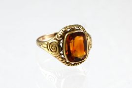 Broschen, Ring, Anhänger, Collierketten und ein einzelner Manschettenknopf, teils besetzt mit Bernstein, Granat, Emaille, farbigen und farblosen Dekorsteinen, Gebrauchsspuren, teils beschädigt, dazu Damenarmbanduhr, Metall, Ansatzband unvollständig, und Damenhängeuhr, Taylor, mit Uhrkette, je Metall vergoldet, Gebrauchsspuren, je nicht gangbar