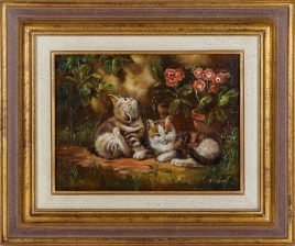 geb. Schleswig 1912, „Zwei Katzenkinder“, Öl/Holz, 18 x 23 cm (41530-13)