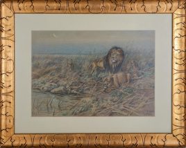 1865-1926, „Ruhender Löwe“, Lithographie, mit Graphitstift übermalt, 30 x 32,5 cm (PP-A.) (41494-56)