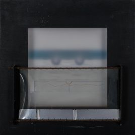ortsbez. Karlsruhe, „o.T.“, Objektkasten, Nr. 7, Holz, Metall, Plexiglas und Kunststoff, 50 x 50 x 13 cm, fleckig (41069-214)