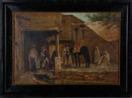 r.u.bez. Eugine Girardet, „Ankunft an der orientalischen Stadtmauer“, Öl/Lwd., 35 x 52 cm (41494-65)