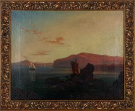 l.u.bez. G. Carelli, „Abendstimmung am See mit Segelbooten“, Öl/Lwd., 46,5 x 58 cm, restauriert, Farbfehlstellen (41494-66)