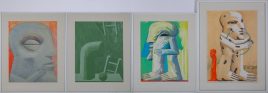 Heppenheim 1936 – tätig in Karlsruhe, „Kopffüßler“ bzw. „Röhren“, vier Farblithographien, eine mit Auflage 2.161/10.000, 40,5 x 29 cm (1), 25 x 38 cm (3) (40463-21)