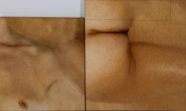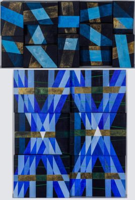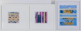 dat. 1997 und 1998, Tivoli 1955 – tätig in Leipzig, „o.T.“, zwei Arbeiten, Druck/Stoff, 25 x 25 cm und 30 x 30 cm (2) (41501-118)