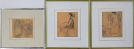 Groß-Gerau 1871 – 1914 Frankfurt/M., „Figurenstudien“, Bleistift- bzw. Rötelzeichnung, 18 x 8 cm und 15,5 x 14 cm (PP-A.), gebräunt, fleckig (2) (41486-32)