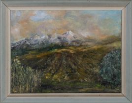 Heilbronn 1960 – tätig auf Schloss Bartenstein, „o.T.“, Öl/Lwd., 25 x 40 cm – verso Stempel Galerie F.A.C. Prestel, Frankfurt – (41501-116)