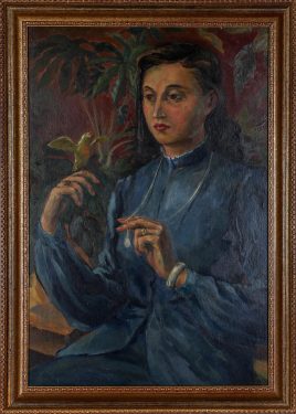 geb. Hennersdorf/Schlesien 1927, „Elegante Dame mit Hut, Collier und Ohrschmuck“, Öl/Holz, 24 x 17 cm (41530-12)