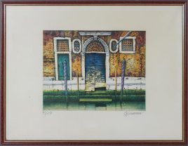 Emmendingen 1935 – 2015 daselbst, „o.T.“, Farblithographie, VII/XV, 37 x 53 cm, gebräunt, Glas beschädigt (41069-216)