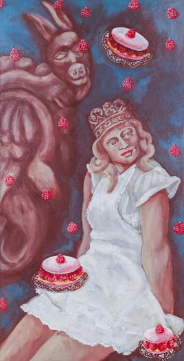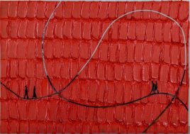 dat. 2017, Paris 1971 – tätig in Berlin, „Red line small plate“, verso betitelt, Acryl und Collage/Ktn., 30 x 40 cm (41501-119)