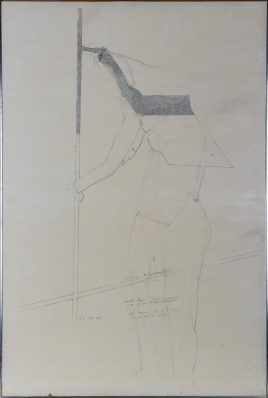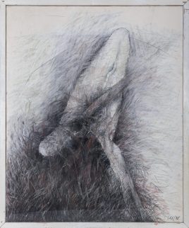Karlsruhe 1941 – tätig in Ettlingen, „Z55/63“, Blei- und Kohlestiftzeichnung auf tonigem Papier, 31,5 x 43,5 cm, Klebstreifenrückstände (41069-193)