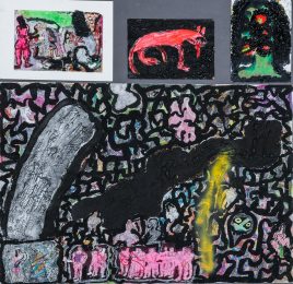 je verso undeutlich sig., dat. (19)97, „Tsul“ und „Wort“, verso betitelt, zwei Hinterglasmalereien mit Silikonnoppen, je 50 x 40 cm (2) (41501-180)