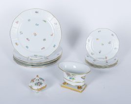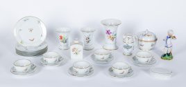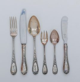 darunter Kuchenbesteckteile, Hildesheimer Rose, zwei verschiedene Fischbestecke, für vier bzw. mind. acht Personen, sowie weitere meist versilberte Besteckteile, teils mit Monogramm, Serviettenring, Gewürzstreuer mit Blauglaseinsatz, etc. Gebrauchsspuren (41571-8)