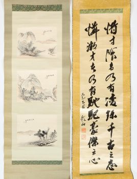 Frankfurt/M. 1875 – 1940 daselbst, „Sommerlandschaft“, Aquarell und Tusche, 16 x 14 cm; Andreas Bernhard Söhngen, r.u.sig., Oberlahnstein 1864 – 1920 Frankfurt/M., „Hansabund“, Sepia und Aquarell, 11 x 18 cm (41486-12)