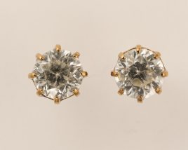 besetzt mit je einem rund-facettierten farblosen Dekorstein, ca. 1,6 g, Rückstecker fehlen (41443-3)