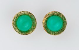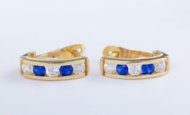 besetzt mit je einem rund-facettierten blauen Dekorstein, ca. 1,4 g, Gebrauchsspuren, ein Rückstecker fehlt (41504-69)