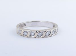 besetzt mit je einem Diamant im 8/8-Schliff von zus. ca. 0,01 ct., ca. 2,0 g, dazu Paar Ohrstecker, 585 WG, besetzt mit je einem Brillant von zus. ca. 0,05 ct., ca. 0,7 g, Gebrauchsspuren (41579-7)