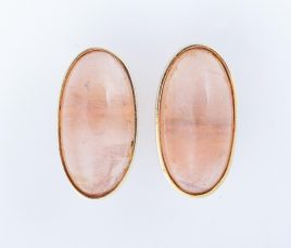 Meistermarke GJ, ornamentiert, besetzt mit je einer Korallkugel, D = ca. 3,4 mm, ca. 0,7 g, dazu Paar Ohrstecker, 585 GG, besetzt mit je einer Zuchtperle, D = ca. 4,0 mm, ca. 1,2 g, Perlen stark berieben, Gebrauchsspuren (41383-15)