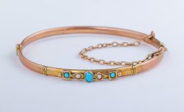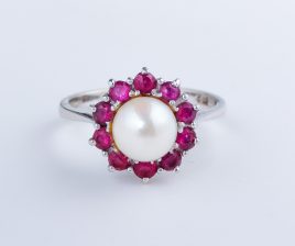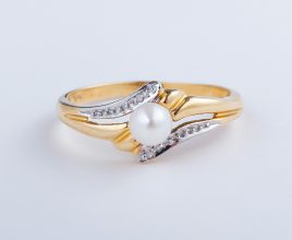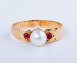 wie Trauring, Dreifachring und gerissene Kette, zus. ca. 5,4 g; dazu ein Teil in 585 GG, besetzt mit einer Zuchtperle, ca. 0,6 g (41543-25)
